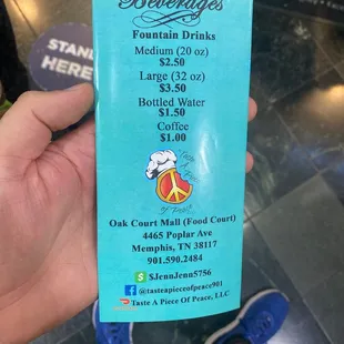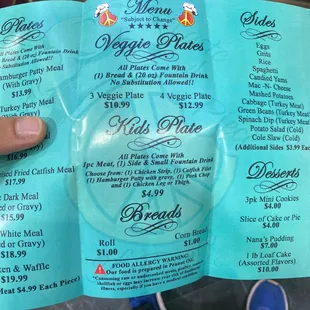 a menu for a restaurant