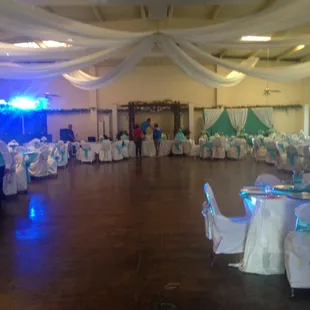 I have been to two small weddings/receptions here. From what I understood, they offer someone to decorate for you, but you have to find your own servers and bartenders. The decorations were average, nothing too spectacular. It is a large open room, perfect for a small reception. To me it does not seem like it is well managed or taken care of properly. You could tell the floors were dirty and the decor on the windows isn't cleaned or updated often. The kitchen area was really dirty, with molded "left overs" in the fridge. It's a shame its not taken care of better, because the building has so much potential!