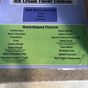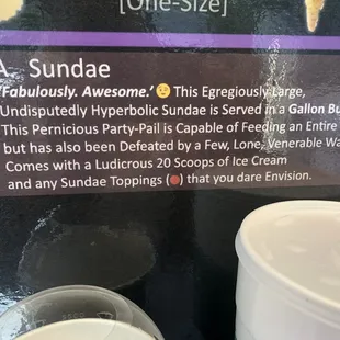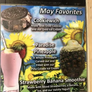 a menu of ice creams and drinks