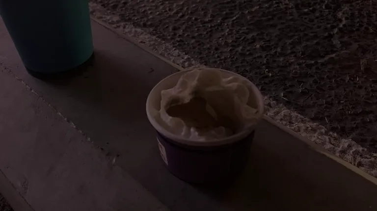 an ice cream sundae in a styrofoam container