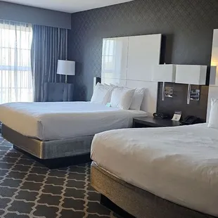 What a beautiful hotel. Visiting during a non busy time, we were upgraded to a suite. With a living room, bathroom, and bedroom, there was a ton of room. It's nice to have somewhere to sit that is not the bed. Multiple TVs too. The bed was comfy. Shower huge. Room dark for sleeping. Wish I was able to stay more than one night. Stations were set at Elvis music upon entering. Pick your decade for music taste. A movie played each night at 7pm in a large theater. Kind of fun to see these old movies on a large screen. We really liked the band that played in the lobby/bar. They were so talented and very knowledgeable about the music, writers, singers, and history of the songs they played. There is a shuttle to Graceland but we walked as it's right across the street. We checked out and they let us keep our card parked there while we did our tour. Staff was wonderful in making sure our stay was special. Great stop.