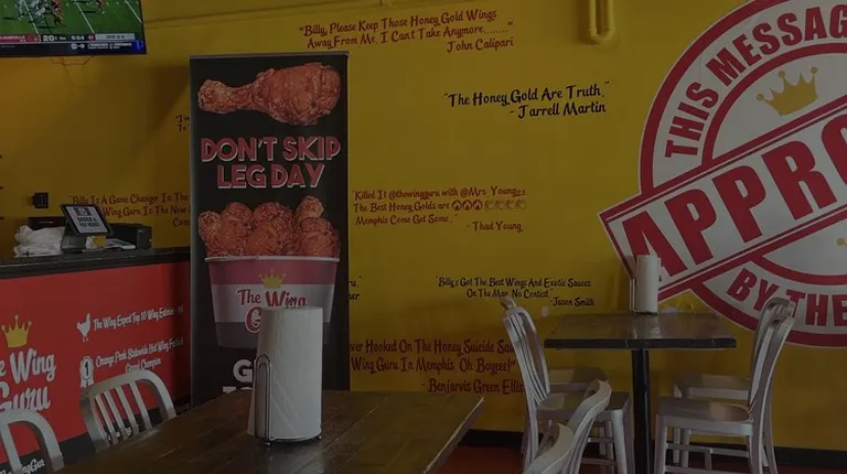 When I walked into the Wing Guru store the woman behind the register was on a phone interview to get another job because "she needed to get out of this restaurant". She had a Bluetooth earpiece in her ear and never greeted or said anything to me. The restaurant was empty and a little messy. I waited about 5-7 minutes at the counter while listening to the woman's phone interview (who let the other person know that she "was an assistant manager). I left the store. (But things did not get better at the other wing establishment across the street). Both 901 Wings and Wing guru should be shut down!
