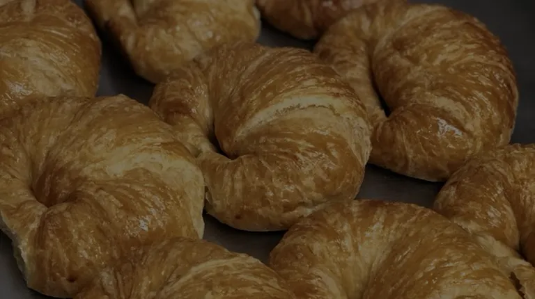 a croissant sandwich with ham and cheese