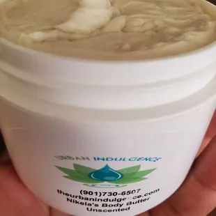 I have loved this shop since it was recommended a few years ago by my nail tech. The body butters a rich and thick but apply with ease. There are numerous scents, all of which are great. I love Bitten! The also carry bath bars, body oil bath bombs, natural deodorant and other items. Stop in and you'll be happy you did.