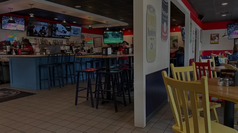 Waldo's! We have been to several locations of Waldos and I love their chicken. Takeout from here is great, service fast and the chicken is as anticipated. The dine in experience is fine. They have a large bar area which is separate from the food order area (probably so they can employ teens at the food counter). There is an extensive selection of draft beers and they do have some happy hour periods. The one time we ate in at this location it did not appear super clean. The floor feels a little sticky, and there is just some evidence that folks have been there before you. But as I said, I do love their chicken so we will still be back! (or maybe takeout is the way to go?...)