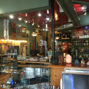 First off, I must commend the actual building that is Wizard's. Something about driving up to the place is oddly fascinating. It has a very hippy vibe and you cannot help but be intrigued by the place when you see it. This place is actually almost OCD clean- which you don't come to expect from a "smoke-shop." They have a wide array of blown glass pipes. Though I wouldn't necessarily use the term gorgeous to describe an item used to smoke tobacco, I couldn't help but notice how beautiful these pieces really were. There is so much detail and attention in each piece, and even my non-artistic eye could spot that.The staff here is friendly and laid back. Go figure- laid back? In a "smoke-shop"? Shocker right? In addition to smoking accessories, they have WoodWick Candles. I bought my first one here and have to say it has been added to my ever snobbish list of candles that I now adore. It's a very short list people.Wizard's also offers up incense, lighters, shoes, jewelry, crystals, detox drinks and pills and even some silly magnets and stickers. I hate to say it, but I wish I smoked so I had an excuse to come here more often.