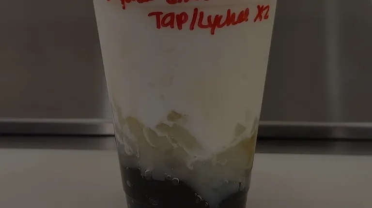 a row of boba cups on a counter