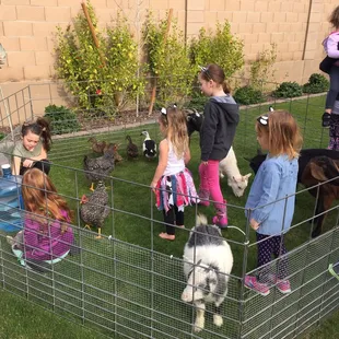The name fits so well. We hired A Childs joy for our birthday party and it was a huge success. Baby goats, Chickens, rabbits, ducks all bring joy to the kids in more ways than one. The staff was professional courteous and knowledgeable about the animals. They are quick with facts and also quick on the clean up. We loved that. Although we got lucky & were able to lock in a reservation with 2 days notice. I would recommend at least a week's notice to get the date you need. Nothing beats a small petting zoo, in your own backyard! Who knew such a thing exists. Grass is preferred (animals love grass). Hope your event is as successful as ours. Enjoy!
