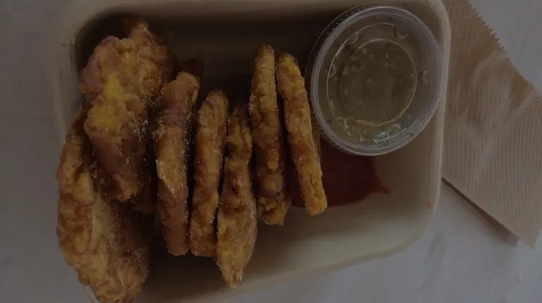 Sandwich and plantains were both good choices, but I thought the Aji sauce, a green chili sauce, was great. Loved the kick with the plantains.