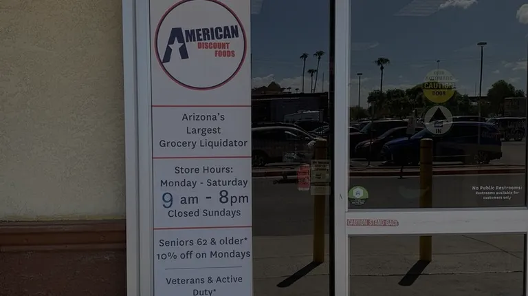 This was a cool "pop up" tik tok thread I viewed and found I had to go! There was a similar place I use to shopped in Nor Cal, so this was a must check out / compare for me!There original location was founded 1998 and was first called Harvest Market. This location is the largest of the two they have expanded too that's only featured in Arizona. When we first arrived, they had many advertised special. American Discount Foodsdeals in shelf products; From near or past expiration or suggested "sell by" dates, dented cans, out-of-season items or overstocked items. To salvage pallets that may also have imperfect produce, baked goods and meat. So, always a variety of different types of bargains, constantly rotating brands & affordable stock. But, keep in mind- if you find that amazing deal get it in bulk 'cause it's a situation that if you think you might want to come back later to buy it, it's not guaranteed simply because they're continuously changes their merchandise based on availability and the criteria above.We found a lot of reasonable inventory and some unexpected fun finds. The store is well stocked with EVERYTHING most regular grocery carry. Yet, the saving can be it up to 70% more! Extremely large space with plenty of room to explore. Picked up some great snacks for lunches, some soft drinks, unusual ranges of cheeses & savory sausage links too! The cashiers were really friendly and engaging.They offer a customer service program when providing your name and phone number which keeps track of your purchases and points. If you spend $50 or more ( which we did) on each occasion you are able to spin their big game wheel. They offer additional savings on that as well. Where you land is what you receive. We stalled on 2 which saves us $2 on our next visit. The biggest prize is $15 on their rewards roulette! Additionally, if you provide your email address they send weekend specials to you as well. Just for signing up you'll get a $5 coupon! Fantastic experience and we will be coming back to save on more distinctive discounted items this clearance center has to offer. Check it out!