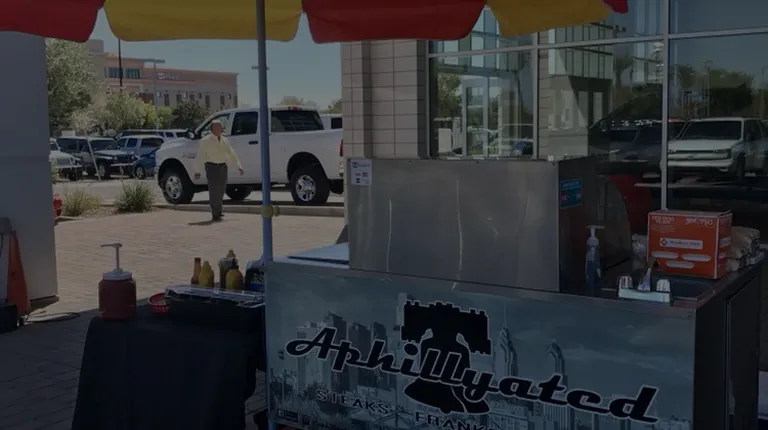 Best hot dogs in town! Very delicous dogs with several types of toppings. The owners are very friendly and make it a great experience. Aphillyated is always at "Dierks Bentley's Whiskey Row" in Gilbert on weekends and every time I'm there I can't help but get a hot dog before and after having a good time!!