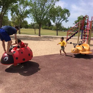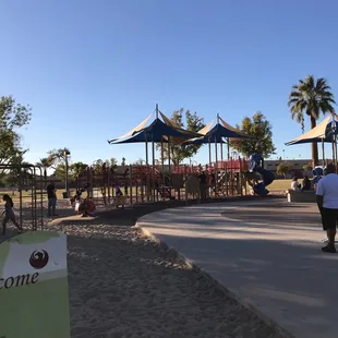 This park is awesome!! We were in town and needed a place to take the kiddos (4 boys ages 3-11) and this was great for all of them. Sandboxes, monkey bars and gyms and a large play area for soccer and such. We are very happy this came up on the search. There is also a Starbucks near the attached parking lot...a win for the parents!!
