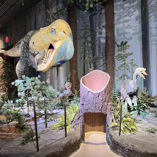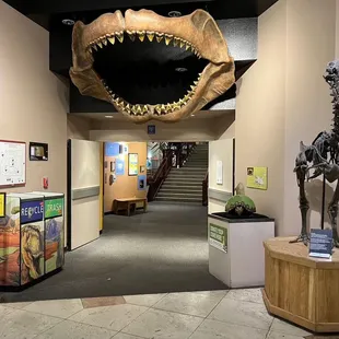 Quite an entrance! All sorts of dinosaurs surround the building with one about to crack through the building. Well informed educator was in the front area talking about the extinct mammoth within Arizona where the research has been paused since it's owned by the government. It was amazing to see these fossils up close. There are 4 entrances within where one is 75000 BC, another is where you can go through the mine and jail (established in the 1880s) with metal beds and no bedding so a fire cannot be started, and brings you to the outside courtyard to pan for fools gold and "excavate" dinosaur fossils; the gift shop was another entrance; and the main entrance with a huge set of teeth above the doorway. The little mine maze was fun for the kids and same with the jail. Interesting to see to sure. Panning for gold was a popular activity as well as the excavating of the fossils with hand brushes. The entrance with the large set of teeth allows you to go to the top and also to the bottom with many levels of paleontology artifacts. One of the floor does have a live looking trumpet fish. There are all sorts of activities for kids such as a triceratops gigantic puzzle where you put its 3D skeleton together. Another area has a large ocean mammal puzzle on the floor to put together as well. There was building blocks which mimics the mining blocks. Beading. There is a room for little kids for legos, small puzzles, "fishing" and more. Bathrooms are throughout each level. Security and staff are within each level and rooms. Overall an educational and fun place for kids and adults.