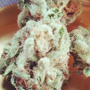 This beauty is White Widow, most definitely a patient favorite! Coated with crystals and purple to the core. 'Nuff said!
