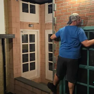 Climbing in a ventilation shaft.