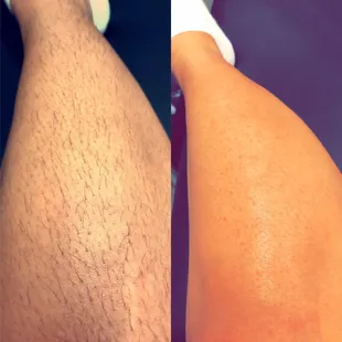 A quick before and after for a leg wax from a happy client.