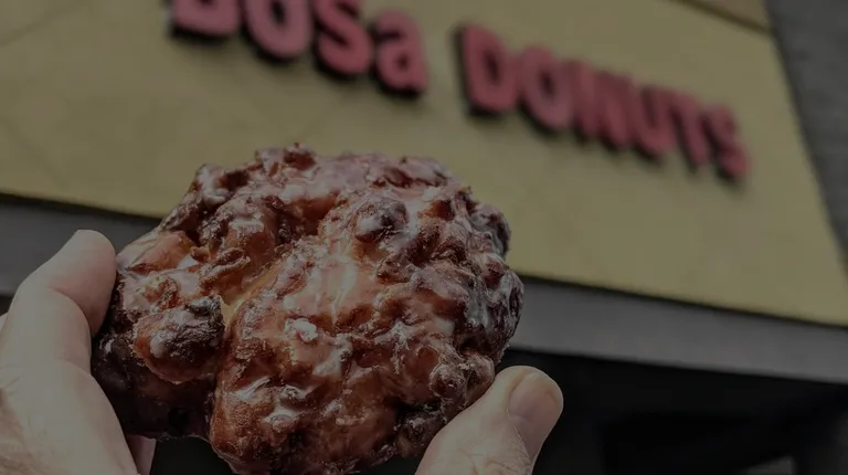 Lonny (aka @donutduster) with a delicious cherry fritter from Bosa Donuts.