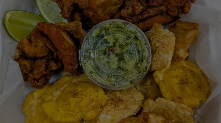 Best pork & chicken chicharrones, tostones (fried plantain chips), and seasoned fries in town!! You need to try it. You can walk in & order for takeout, you can order online for takeout and also available thru Door Dash, GrubHub, & Uber Eats!