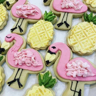 a tray of decorated cactus cookies