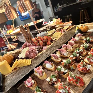 Grilled peach Barata, arugula, and prosciutto bruschetta.