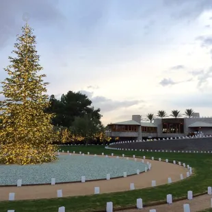 Came here for a holiday lights open house this year. You park at the south side of the church at 5225 E. Camelback and there is a door that you walk through to get to the Wright House. I have to share, it was a beautiful evening. The weather was warm and even before we got out of our car, we could see the hundreds of Christmas lights twinkling in the distance. As we walked through the door, we were greeted warmly by volunteers and there was a long, long driveway leading to a giant Christmas tree beautifully lit, the long driveway continues to the house. There was a string quartet playing and hot chocolate/ coffee & macaroon served by the Henry. I brought my 9 year old son & his friend with me. There were not too many kids there which was too bad since the look of wonder on their faces were priceless. They were old enough to appreciate the experience and the architecture. It created a memorable experience for them. The house itself is being restored and sits on I think sits on at least a 3 acre property. It's beautiful & worth a visit. Thank you for opening this up for the public for this holiday season!