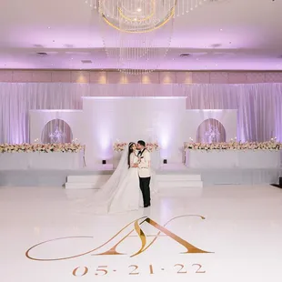 Walking into reception room, even had monogram on dance floor
