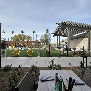Cool spot to check out! Came here for there first time Sunday afternoon. We didn't see any open court slots available to reserve online but still wanted to check it out. My friend grabbed a table on the patio for us and her 2 kids. Decent sized place with multiple bars, indoor and outdoor dining, a couple pickleball courts, ping pong table, corn hole, bocce ball, and a dj. I believe they have indoor golf upstairs as well. We forgot to check put the upstairs area. Our order: Guava Mojito $15Double Smash Burger $17+ fresh red onions+side choice: Spicy CucumbersOrange Tumeric Mimosa $8Expresso Martini $17+Casa Amigos+BaileysSpicy Tuna Crispy Rice $18Barbacoa Nachos $18Kid's Cheese Pizza $??Kid's Lemonade $??Electric Jalapeño Watermelon Margarita $15Food and drinks were good! Loved my burger and the marinated cucumbers. It was marinated with sesame oil, gochugaru (Korean chili flakes), rice vinegar, and possibly fish sauce? Yum! Our server was friendly and helpful. We are planning to come back with others and try pickleball next tim