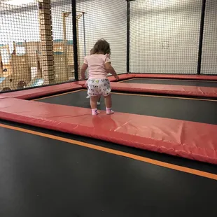 Overall this place is adorable and spacious. Lots of climbing, jumping, interactive play opportunities and spaces. The trampolines are so fun! About the experience:On the other hand, there are some lack of parent supervision for tots that have bad manners or lack socialization skills. Incidents:1. A child (m) pushed my young child (f) and no parent was in sight to help address it with him other than me. 2. Kids took toys in the no toys allowed lunch area. I'd probably go back if I'm in the area.