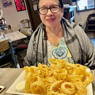The views are amazing with good food. Had the special and it was large enough to share with 2 people. The onion rings were a great app.