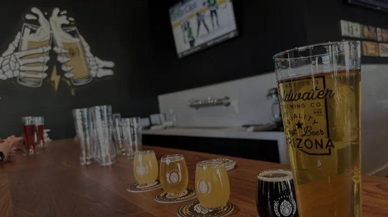 Great atmosphere with simple visually appealing decor. It's pretty lively even when you'd think it would be slow. They have a great selection of homegrown ales to choose from. Predictably these days they are IPA heavy but at least they are interesting.I lean towards heavier slow sipping ales and the barrel aged Lagoon Lurker fills that need nicely. The most surprising was the Winnie the Brew Honey Kolsch which is buzzing with body and tasteful sweetness. The Hop Chowda Hazy IPA is citrusy and tart and pleasant on a warm early Arizona summer day.There is a cooler with to go cans and some unique apparel to show the police that you've been drinking at one of the better establishments in South Tempe.If the Beer Hunter were alive today he'd probably feel at home at Goldwater Brewing.