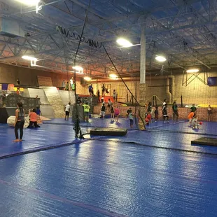 Fun open pad area for all ages. Even gymnasts were doing cool tricks on it