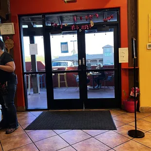 the entrance to the restaurant