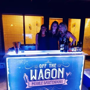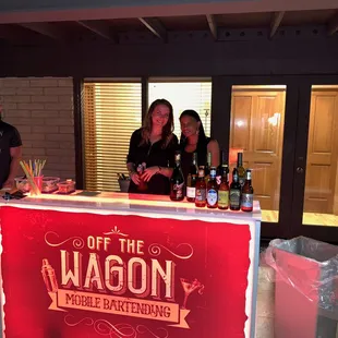 A best friend of mine was getting married and asked if I knew anyone who could bartend at his reception...I then recalled seeing an ad for Off The Wagon. I inquired and was contacted within an hour and answered a few simple questions, "where?, how many guests? etc..." I had no idea what a service like this would cost and was pleasantly impressed with what I thought was a fair price. When the day came , the crew arrived on time and ready to work... the ladies behind the bar were professional, energetic, and it was really comforting to know that no one underage was being served. The party was great and I will be hiring this company for my next event . I would recommend...