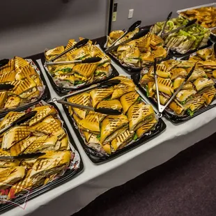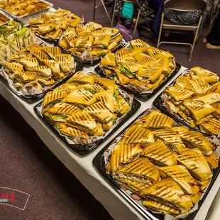 The sandwiches were delicious and organized by toothpick color. Very happy with panini bread & grill catering- I'll absolutely order here again for the next group. The pasta salad was supposed to be Mediterranean and I was hoping it had kalamata olives but there were mixed vegetables instead, was really yummy though. Fruit Salad was fresh and beautiful. Garden salad was a hit too. But the sandwiches were my absolute favorite!!!! The gentleman that took my order was old school east coast friendly I felt taken care of and I HIGHLY RECOMMEND letting them cater for you. Just call you won't be disappointed. (Oh and the utensils that were included were freaking high quality too)