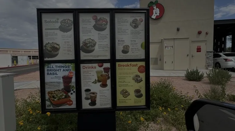 Avocado, marinated chickpeas, Brussels sprouts, cucumber, croutons, spinach, romaine and chicken or tofu, or steak (add'l charge). Paired with lemon basil vinaigrette (add 280 cal).