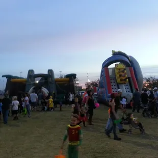 I was so excited to take my kids to this event but left supper disappointed. The price didn't seem to bad for everything that the advertised but when I got there they were letting people go in without checking tickets ( they didn't scan it or asked anything) which made me wonder why I paid about $80 for 3 people. We arrived in the area at 5pm and we parked by 5:30pm because of how long the line was to get to it. The lines for the inflatable were insane, ~15min wait min for kids to go on once. Husband and I had to split on different lines so that my kids could at least get on two inflatables within 30min waits. Then it was confusing on who was given out the candy for kids until we found out it was at the balloons which also Had wait lines and most of the candy given our was tootsies (not even good type of candy). Then to order food or desert lines were so long (waited 30min) each time. We didn't even get to do the spookier trail because there was not enough time since at 9:30pm exact they stop people from getting on anything to close down. So in summary if you go expect to wait long times to do any of the activities and crappy candy all for an expensive price which they may or may not check your tickets to see if you actually paid. It was not worth it and will not be returning again.