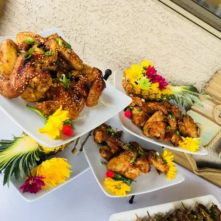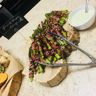 Strawberry spinach salad. Steak filet with Chimichurri shrimp. Roasted asparagus, roasted au gratin potatoes