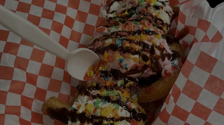 They have churros, ice cream, & funnel cake. I got the funnel cake. It was crunch at the edges and soft in the middle. I got the Nutella and strawberries.