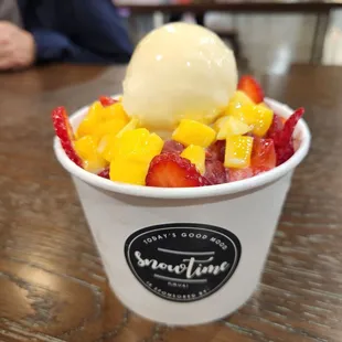 I really like Snowtime. Their shaved ice is so soft and fluffy. It is unlike the Italian ice or the snow cone ice. They use milk I think in the shaved ice. There is sweetened condensed milk as a topping if you want it. You can choose your topping or you can get one of their pre selected offerings. They have drinks but do not offer boba which is a surprise to lots of people. They have the little fish pastries with the option of Nutella or red bean or custard. I like the custard and the Nutella better than the red bean. Nothing wrong with the red bean and those who like it should probably get that filling. The fish cones are good too. They have flavors like matcha and taro or vanilla or chocolate some days. They rotate them out. For the mixed flavors you might have to go with what they offer that day because the machine can only dispense a mix of the two flavors they decided on that day. They were extremely busy last time I went and the place was crowded. It was hard to find a table on a Saturday evening.