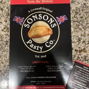 If you have a moment, I'd encourage you to stop by Sonsons Pasty Company in Gilbert or Mesa. I placed an online order today and stopped by to pick up. Simple storefront but very nice staff. It's a great sign when the lady tells you one moment she has to wash her hands AND she was already wearing gloves. They appreciated my crazy and small talk. Was able to pick up my order without issue. When I went to tip another $1 the lady reminded me I already tipped on my online order, again the small stuff. Great integrity to mention that. The extra $1 was intentional, great service! You can get these frozen, pre baked or hot too! Why not travel with a pasty. :) Support local & shop small business when possible.