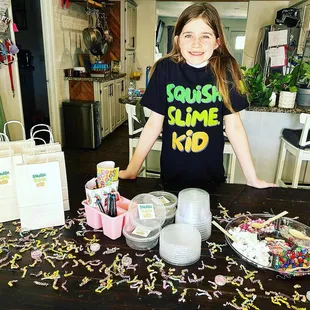 We hired squish slime kid for my daughter's 12th sleepover party. She loves slime, but we were worried that her friends might not think a slime party was cool enough for 6th graders...boy were we wrong! All the girls had the best time making their slime and played with it all night. They all hope to have their own squish slime kid parties! The owners, Cali and Danny were so easy to work with, and it is so nice to have someone else clean up the slime mess. If you are looking for a fun, easy and memorable party idea, this is the way to go!