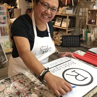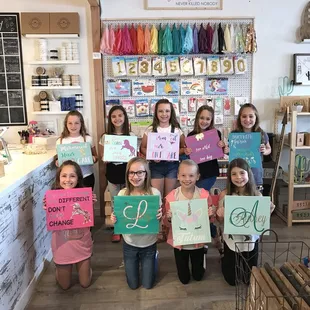 One word: AMAZING. I was here for a bachelorette party and everything was just perfect. We came in and set everything that we wanted to decorate. Everyone was so accommodating and welcoming. The store in the front is very well kept and has the cutest decorations and shirts. The actual painting and making of the signs was just a blast. Boss lady was very knowledage and assisted everyone at all times. I love how my sign turned out and the pricing is perfect. I have nothing but great things to say about this business. Keep up the good work boss lady.