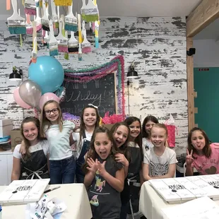 I had my daughters' 9 birthdays there. They did an outstanding job. The girls had a great time. It was a great two hour party that didn't require lots of parent involvement. The moms now want to come back and have our own happy hour painting party!!! Thanks Studio 223. Also, the shopping part of the store was super cute and unique.