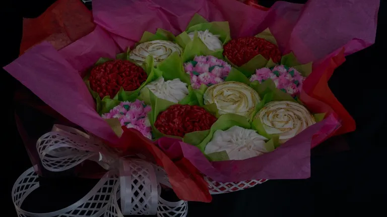 a close up of a bouquet of flowers