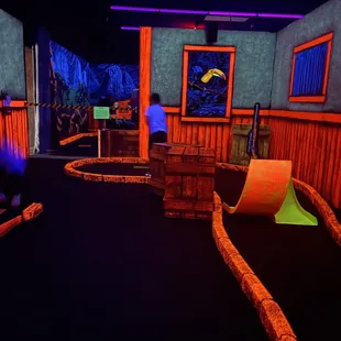 Ok I liked this. I think this is great for children. However, courses are small/short and not difficult but again, great for children. Black light was fun, not too overwhelming. Friend and I got through it in about 30 mins. Small arcade in the front and $13 a round of golf.