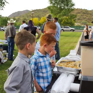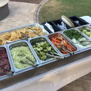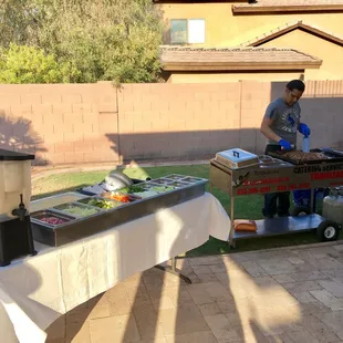 We did not have enough food (Taco meats) for the amount of guests I paid for (50). We traveled to AZ from CA and in CA they factor 4-5 tacos per person. Well according to the Taco man, they alot 2-3 tacos? An adult hungry Latino eats their fill of a good Taco, which it was. We expressed our concerns to the Taco man, and he somewhat agreed with our claim (he was a full sized man). No concessions were made. No apologies given and we had to order delivery pizzas for our remaining guests. I, the host, did not eat so that one more of my guests could eat.Please ask questions and you will have to pay for extra if you have guests that enjoy tacos.