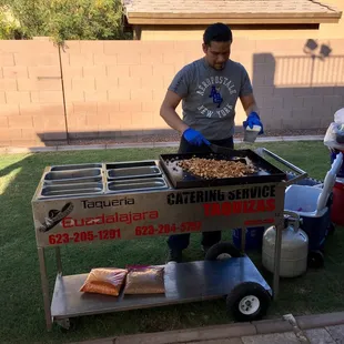 We had taqueria Guadalajara for my son's graduation party. We had a crowd of around 125 people. Pedro, the taco chef from taqueria Guadalajara managed things perfectly. He kept the line moving, made sure everyone had what they needed. He even packaged up the leftovers for us to have the next day. Our guests are still raving about the taste and quality of the food. Everyone's favorite was the chorizo. Pedro doesn't speak any English and my Spanish isn't very good but between Google translate, my poor Spanish, and the international language of tacos, we did great. I would absolutely use taqueria Guadalajara again and I would recommend them to everyone.