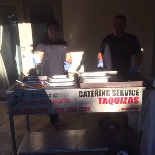 We just had Taqueria Guadalajara for my sons birthday. They were great from beginning to end. I called with a question and they were very friendly, booking was easy online with a $100 deposit. They have reminders that go out before the event too. They are less about phone interaction but I prefer the emails and felt comfortable. They came 45 mins before the party to set up and it was great- we did carne asada, pollo asada and carnitas. They were all great! I loved the topping too fresh cabbage, cilantro, onions, and so many more fresh ingredients to compliment the tacos. Really good rice and beans too. Multiple people at the party said they would use them in the future. Glad we found them on yelp!