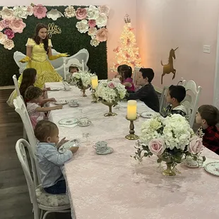 Having my daughter's 3rd birthday here was an absolutely magical experience!!! My little girl had the best birthday ever. I could see the wonder and enchantment in her eyes the entire time, and she felt SO special and loved. Belle was absolutely amazing and the helper who was there was also wonderful. MY family and friends who attended said it was a perfect party, and that they can't wait to come back and have their daughters' parties there when they're old enough. If you're considering having a party at The Pink Teapot, I promise you won't regret it. My little girl is still talking about her party days later and I know she's going to remember it forever. She keeps talking about how she wants to invite Belle over for a tea party so they can see each other again. So cute. 10/10 recommend!!!