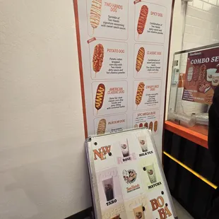 Food - we ordered the original and the potato dog. The original is not like the fair corn dogs. They dip it once, fry it, and dip it again. Reinforcing the burned flavor. I ordered the potato dog plain and they still added a sweet powder. Didn't want to wait another 20 minutes for another one. The sauce for the potato dog just tastes like vinegar. Service - 20 minutes for 3 dogs. Order taker was sweet. I would not recommend or go back. Nothing to can't make at home.